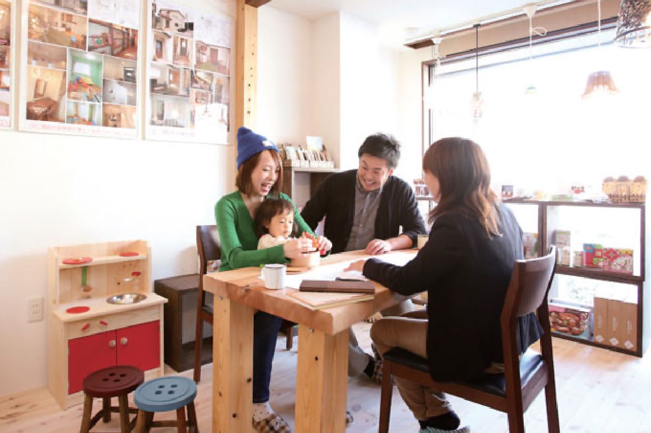 家事の合間に子供たちと絵本が読める天然木のカウンターや、スペースを有効活用したスッキリかつ大容量の収納など、お客様のご要望はもちろんのこと、「お客様の生活」にも寄り添ったプランニングを行います。