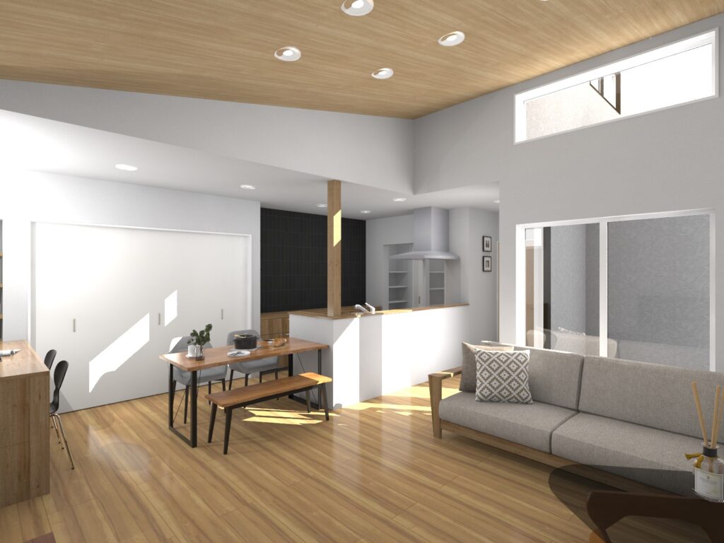 ☆勾配天井+L字窓で開放感アップ