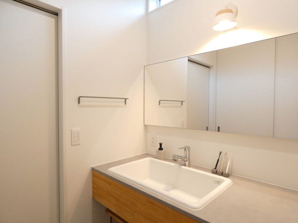 収納部分に既製品を使いながら、天板と側面は造作で仕上げました。