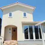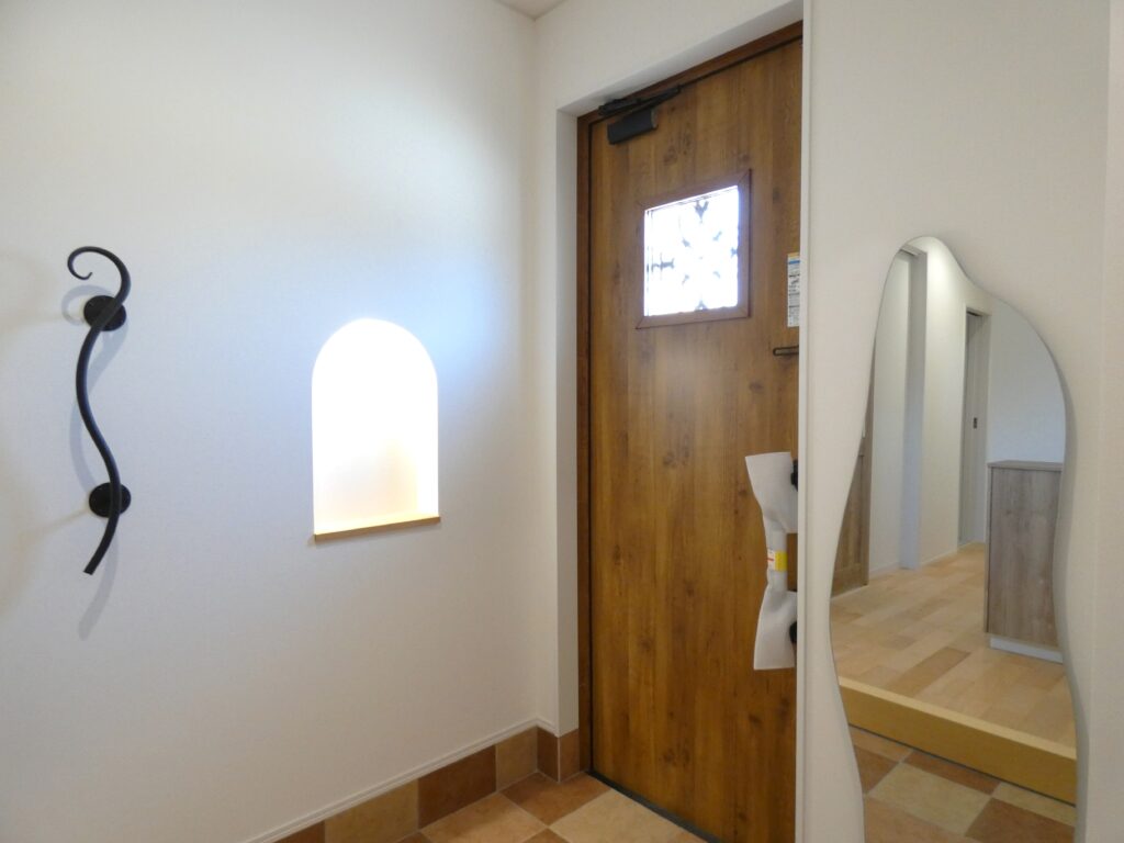 手仕事の風合いを感じる塗り壁に、アーチの玄関ポーチ、