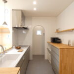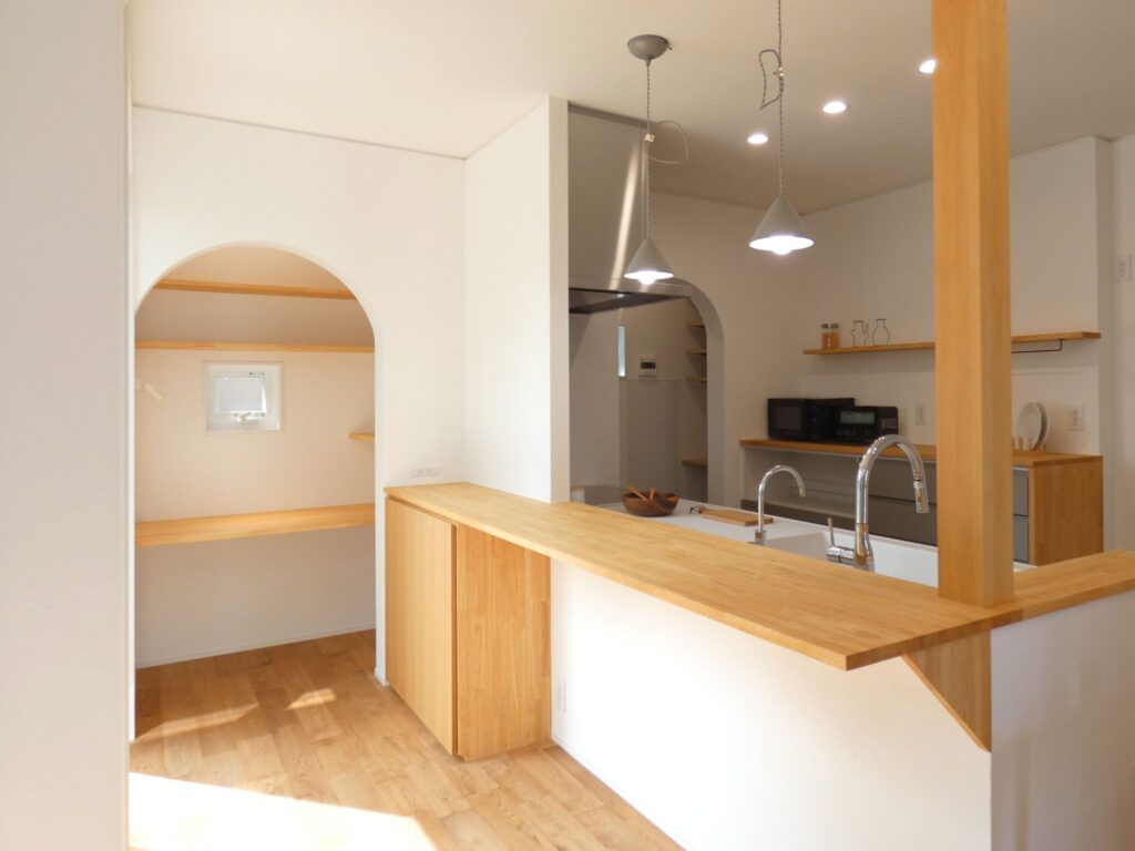 キッチン前には、オリジナルの造作カウンターを設置。