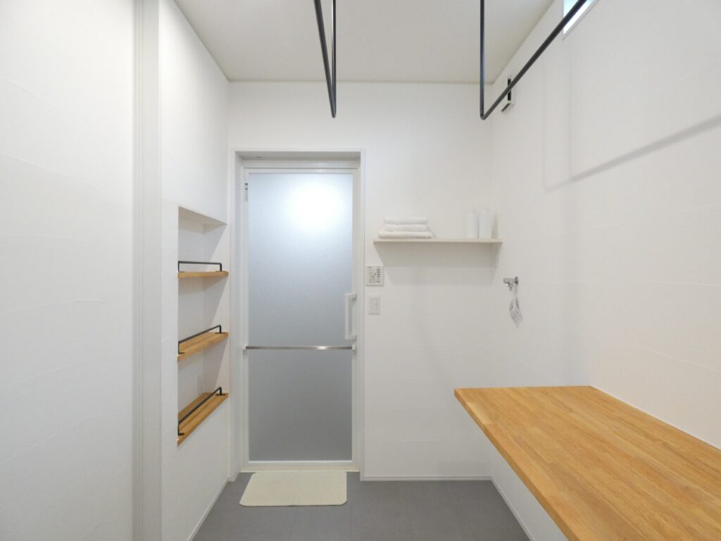 収納部分に既製品を使いながら、天板と側面は造作で仕上げました。