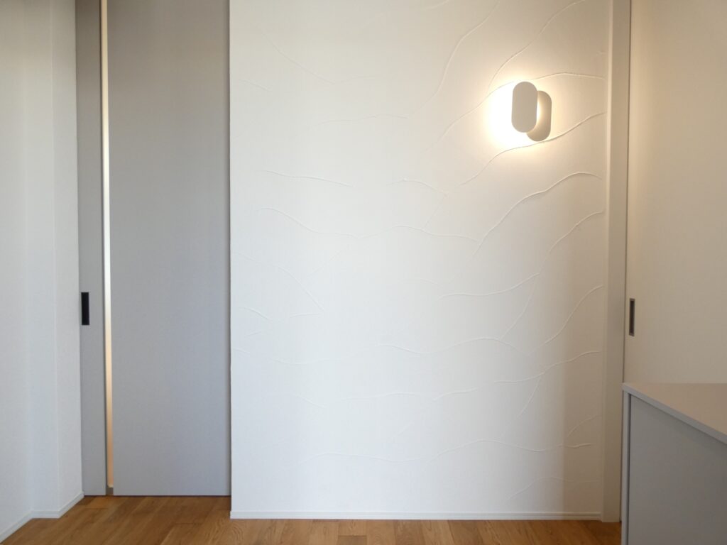 アクセントのグレーの壁をやさしく照らし、お気に入りの場所に。