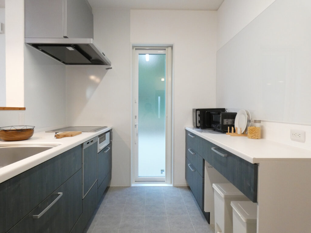 ダイニング横にはペットのゲージスペースや、造作収納を設けました。