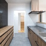 キッチンに採用した、奥さまこだわりの一面ブラックタイルは